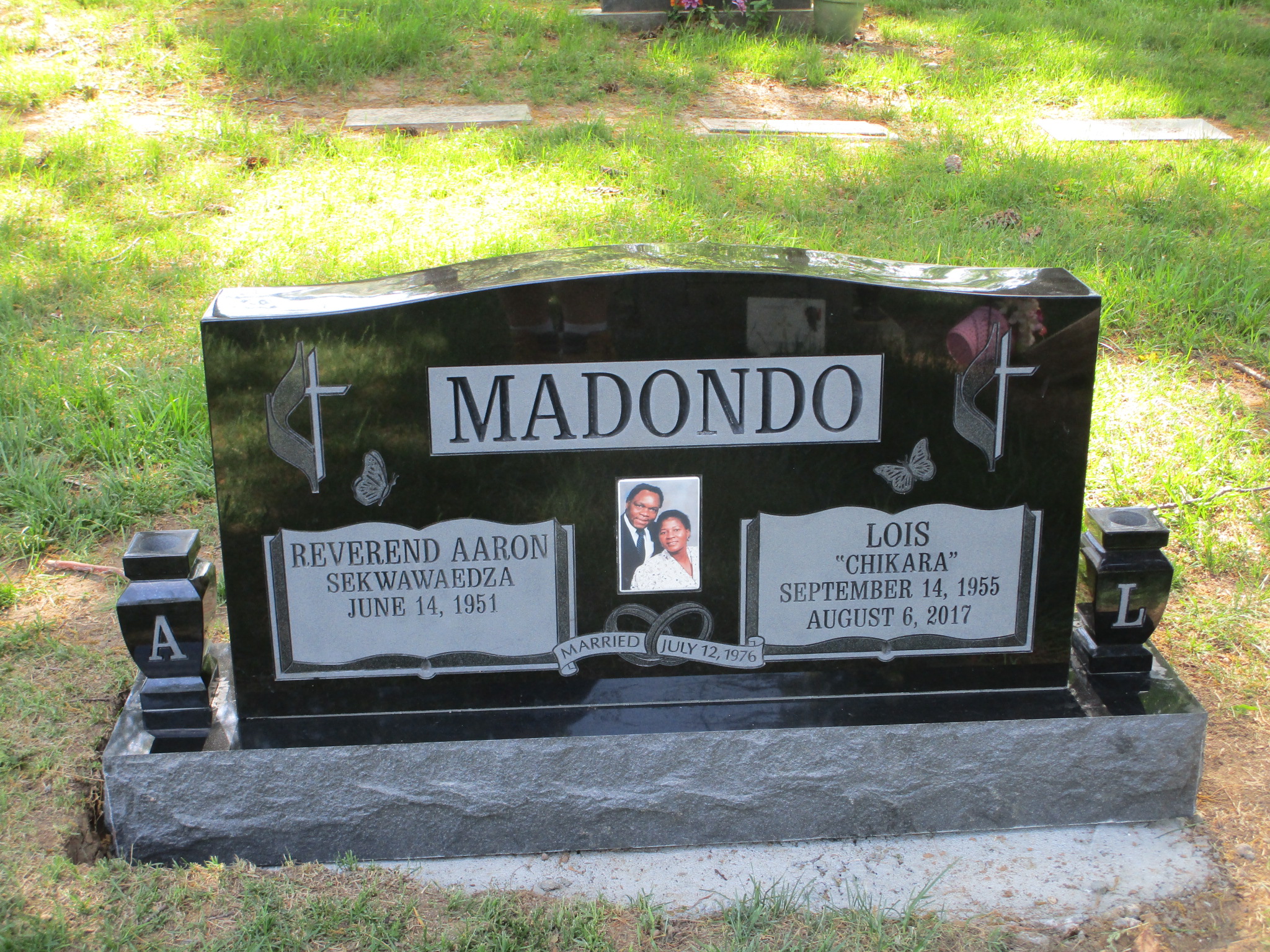 Southern grey no polished upright with inlayed jet black laser etched panels.